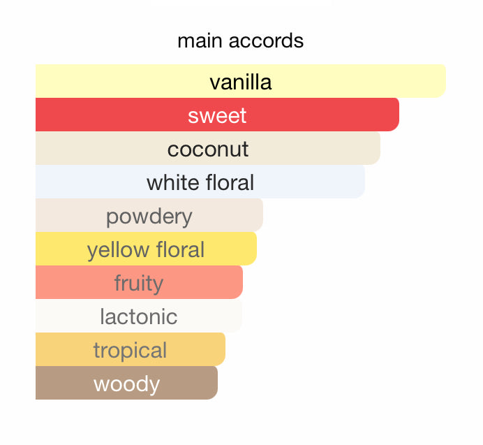 نكهة سويتية بودرية تحتوي من مجموعة أزهار من ضمنها زهرة جاردينيا المنعشة مضاف بمسحة فواكه مع فانيليا تشعرك بأجواء السهرة مع من تحب